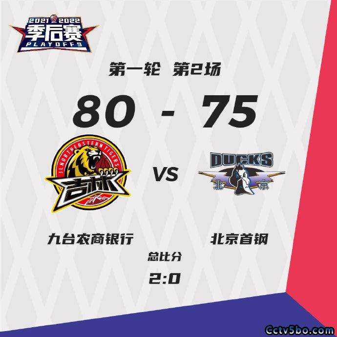 来源:5播体育2022-04-04 19:235播体育讯 北京时间04月04日,2021-2022赛季CBA季后赛继续进行中,本场比赛由吉林主场迎战北京,经过刺激对决,最终吉林凭借主场优势,整体表现出色,以80-75战胜北京。