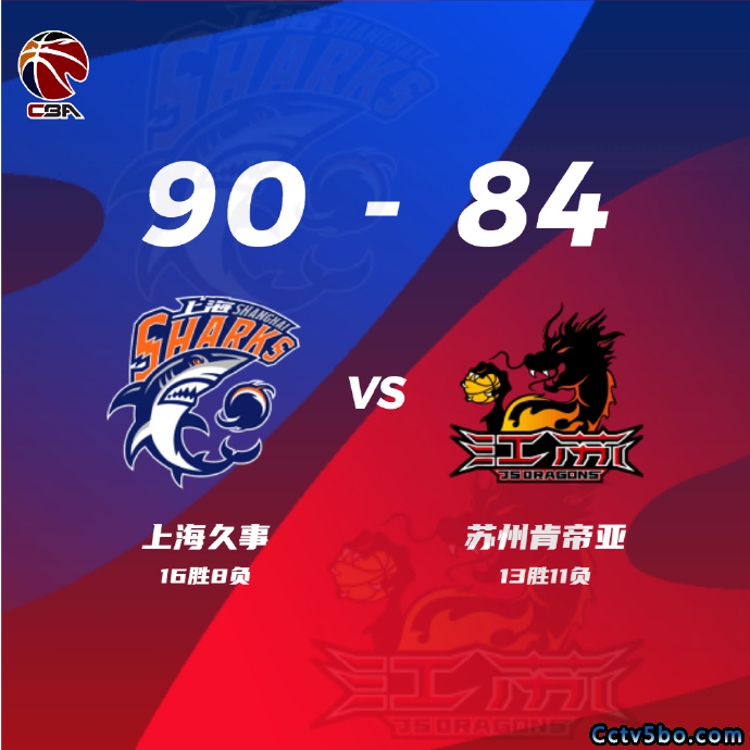 5播体育网 北京时间2023年1月11日晚上20点,2022-2023赛季CBA联赛第二阶段第25轮的比赛,上海久事坐镇主场迎战江苏苏州肯帝亚,上海实力强于对手,本赛季首次交锋上海胜。最终,上海久事90-84战胜苏州肯帝亚,本赛季双杀苏州,球队取得三连胜,并终结苏州三连胜。
