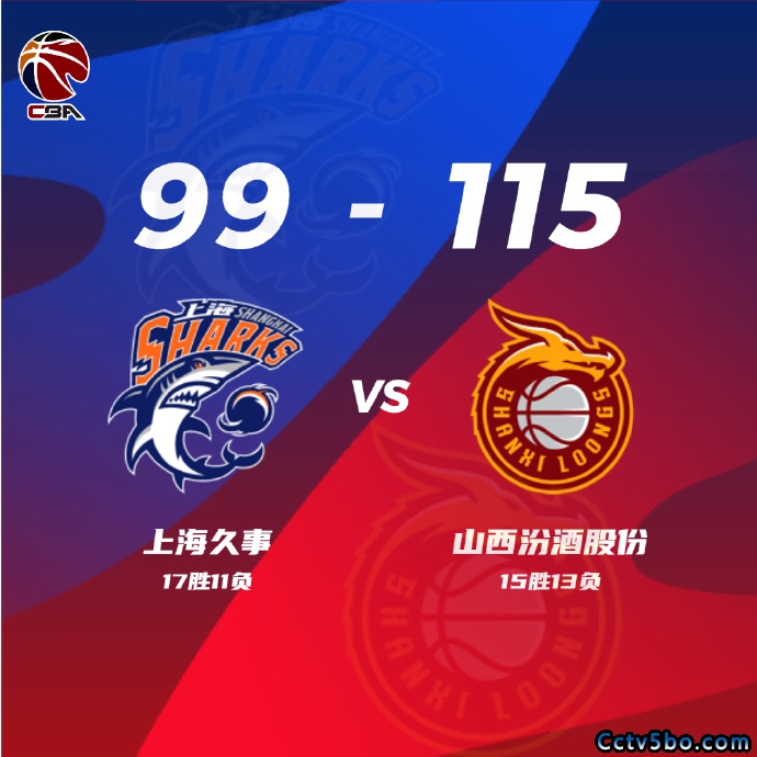 末节,山西队开局打出一波6-2的小高潮,其中常林贡献了5分。此后,两队开始对轰三分,张宁投中3分,但程望樊和布莱德索的三分球还是打停山西队。布莱德索造三分犯规罚中3分,他还助攻闫鹏飞打中2+1,还剩6分钟时上海队重新换上王哲林。王哲林两罚命中,布莱德索抢断后投中三分,费尔德抛投止血,张宁命中3分,山西队回敬一波7-3。还剩3分钟时,上海队没能再将分差缩小到10分以内。最终,山西队以115-99击败了上海队,迎来3连胜。
