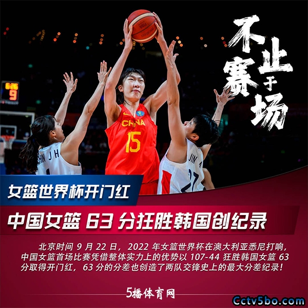 来源:5播体育2022-09-22 16:565播体育网 2022年女篮世界杯于北京时间9月22日在澳大利亚悉尼打响。中国女篮与美国、韩国、比利时、波黑以及波多黎各被分在A组,中国女篮与韩国女篮的比赛在北京时间15时30分开球。中国队凭借强大的整体实力在上半场就取得30分的领先,最终以107-44大胜对手,63分的净胜分也创造了两队交手的最大分差!