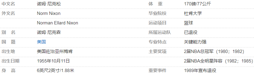诺姆·尼克松(Norm Nixon),1955年10月11日出生于美国佐治亚州梅肯,前美国职业篮球运动员,司职控球后卫。