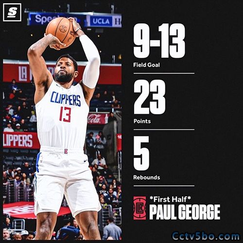 半场乔治18分钟,13中9,三分1中1,罚球4中4,拿下23分5篮板,快船全队60分他拿下23分,得分占比全队38.33%。