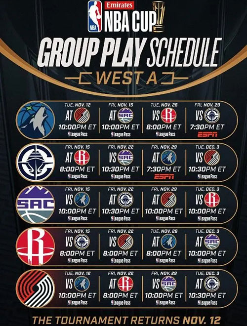 2024-25赛季NBA杯小组赛赛程及全美电视转播时间表公布