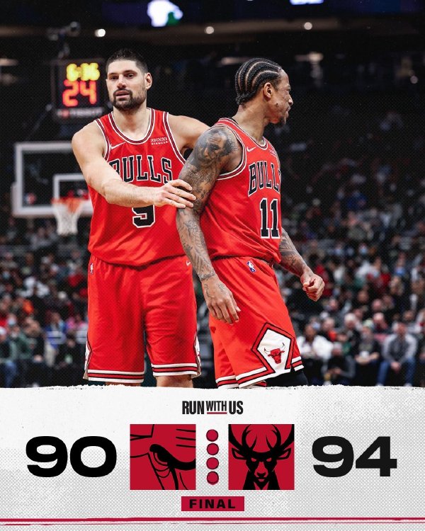 5播体育讯:北京时间1月22日,NBA新赛季常规赛继续进行,结果雄鹿以94-90击败公牛,迎来两连胜。