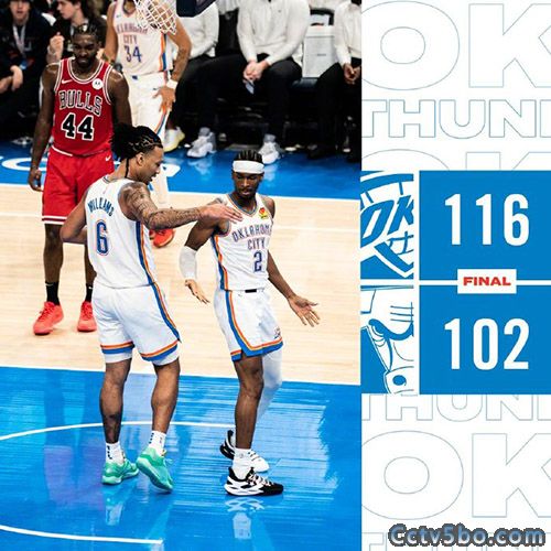 5播体育网 北京时间11月23日,NBA常规赛,雷霆主场迎战公牛,雷霆最近取得5连胜高居西部第三,公牛则是表现一般仅在东部十二。最终,雷霆116-102拿下公牛取得6连胜。