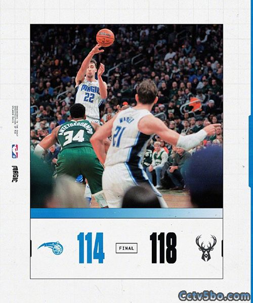5播体育网 北京时间12月22日, NBA常规赛继续进行,东部前四名的一场强强对话,东部第二的雄鹿主场对阵第四的黑马魔术。雄鹿在一度落后9分情况下,字母哥率队最多反超15分,并在最后时刻挡住魔术反扑,字母哥最后时刻连续关键罚球,最终雄鹿118-114战胜魔术豪取6连胜,战绩提升至21胜7负,距离东部榜首凯尔特人21胜6负仅差半个胜场差距,魔术吞下4连败。字母哥37分10篮板6助攻与利拉德24分8助攻,引领雄鹿4人得分上双,班凯罗23分,小瓦格纳29分与大瓦格纳21分依然输球。