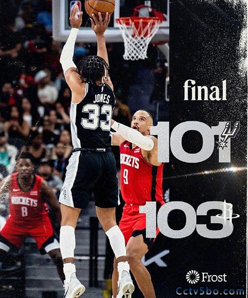 5播体育网 北京时间3月13日,NBA常规赛火箭客场对阵马刺,其中马刺是背靠背第二场,火箭内线核心申京缺席。火箭在一度落后10分情况下,范弗利特与狄龙两位老将率队末节打出11-0攻势扭转局势,并且挡住马刺顽强反扑,最终火箭103-101赛季三杀马刺收获3连胜,火箭取得第30胜巩固西部倒数第五,马刺吞下2连败。