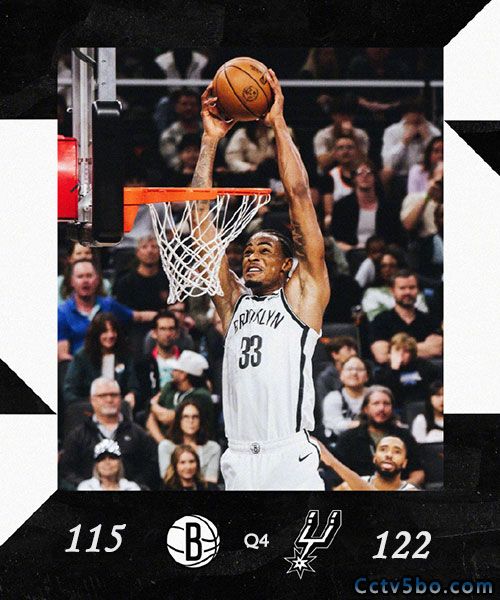 加时赛,布里奇斯三分飙中,瓦塞尔扣篮,芬尼扣篮,文班打板,随后他又封盖芬尼,瓦塞尔三分没中,文班扣篮反超,随后钉板施罗德被吹干扰球,裁判看了回放后改判文班这是一个好帽,凯尔登上篮得手,约翰逊追平三分不中,凯尔登罚球终结悬念,最终马刺122-115击败篮网,逆转险胜。