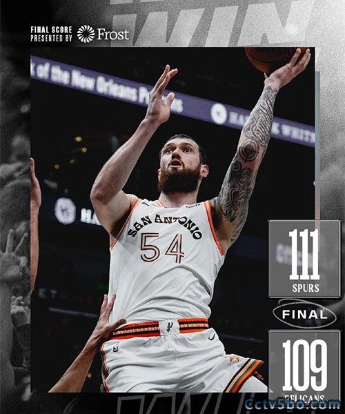 末节,科林斯的上篮帮助马刺取得领先,随后墨菲和琼斯各自得分又率队夺回领先优势。随后马刺多点开花反超比分,文班亚马的三分帮助球队巩固领先。关键时刻,赫伯特-琼斯出现失误,文班亚马两罚全中锁定胜局。最终全场比赛结束,马刺以111-109战胜鹈鹕。