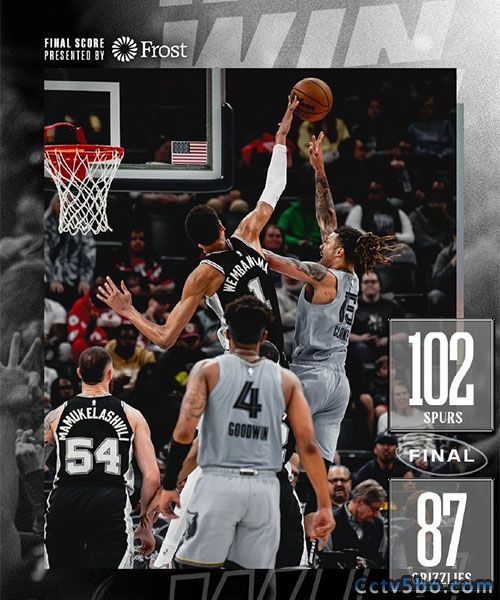 5播体育网 北京时间4月10日,NBA常规赛,马刺客场对阵灰熊,马刺在最多落后14分情况下,文班亚马率领马刺用多点开花的团队攻势逆袭,并在下半场扩大20+优势,最终马刺102-87赛季首次击败灰熊拒绝被横扫,马刺收获赛季第20胜。