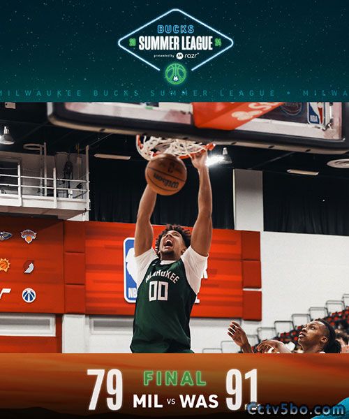 5播体育网 北京时间7月21日讯 NBA夏季联赛,雄鹿对阵奇才。末节奇才找回手感,里突外投完成19-6的攻击波重获两位数优势,雄鹿苦苦追赶无果。最终,奇才91-79力克雄鹿。