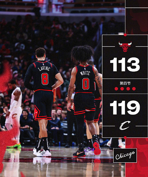 公牛(4-7):拉文26分6板3助、帕威13分10板3助、武切维奇20分8板3助、怀特20分7板6助4断、基迪18分9板7助、道苏姆10分3板4助、特里4分4板