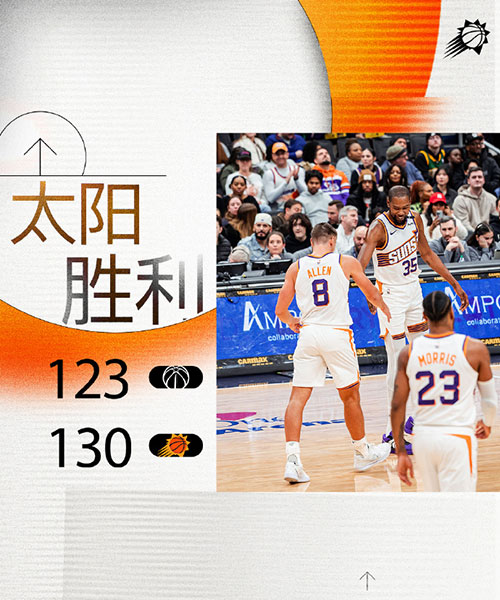 5播体育网 北京时间1月17日,NBA常规赛太阳客场对阵联盟倒数第一的奇才,比尔伤停无缘对阵旧主。太阳全场领先压制奇才最多扩大24分领先优势,奇才末节一度追到仅差3分,布克命中关键三分与关键罚球锁定胜局,最终太阳130-123战胜奇才收获赛季第20胜,战绩变为20胜20负重回5成胜率,奇才遭遇8连败稳居联盟垫底。