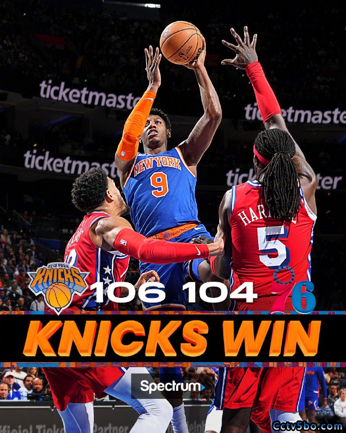 5播体育网 北京时间11月5日,NBA常规赛继续激战,尼克斯前往客场挑战76人。此役,哈登与恩比德双双因伤病缺阵。全场比赛打完,尼克斯106-104击败76人。