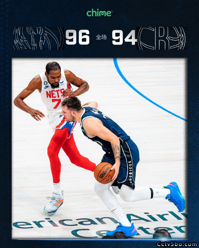 末节,杜兰特中投帮助篮网领先4分,东契奇又是三分回应,约什-格林空切扣篮,之后他再命中三分,芬尼-史密斯打2+1,独行侠打出一波14-0,最后5分钟领先10分。杜兰特中投止血,但芬尼-史密斯又命中三分。生死时刻奥尼尔、哈里斯、托马斯连中3记三分,最后26秒篮网追到91-92!双方展开罚球大战,东契奇得到36分6篮板6助攻,芬尼-史密斯18分,约什-格林得到16分,小哈达威11分,他因为臀伤退赛。最后5.6秒杜兰特三罚一中,篮网抢下篮板最后一攻失误,独行侠96-94险胜。