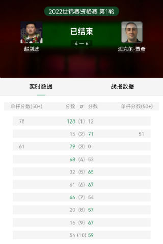 第4局,赵剑波68-53赢下,3-1扩大了优势。