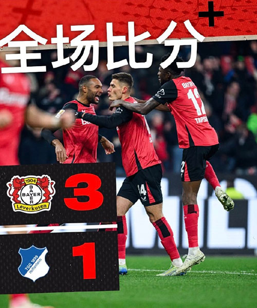 5播体育网 北京时间2月3日,在德国足球顶级联赛第20轮的较量中,勒沃库森坐镇主场迎战霍芬海姆。比赛中,勒沃库森展现了强大的进攻火力。首先,博尼费斯接到格里马尔多的精妙传球,成功破门取得领先。随后,弗林蓬在阿莱士-加西亚的助攻下,再次攻破对方球门。下半场,希克也为勒沃库森贡献了一粒精彩的进球。然而,比赛中勒沃库森的格里马尔多因累计两张黄牌被罚下场,给了霍芬海姆一些机会。霍芬海姆的吉夫特-奥尔班抓住机会,为球队打入一球。最终,勒沃库森以3-1的比分战胜霍芬海姆,取得了本场比赛的胜利。