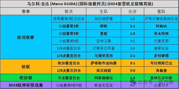 2023/24赛季圭达欧战执法场次明细