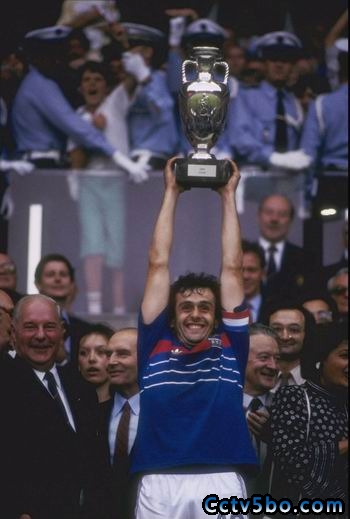 1984年6月27日,在欧洲杯的决赛中,正是普拉蒂尼一记任意球攻破西班牙队大门,帮助法国队捧得德劳内杯,这也是法国队历史上的第一个世界大赛的冠军。图为身为法国队队长的普拉蒂尼举起德劳内杯的瞬间。