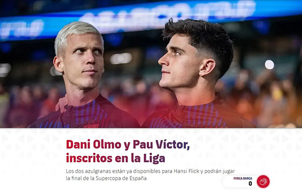 达尼-奥尔莫与保-维克托已在西甲联赛注册