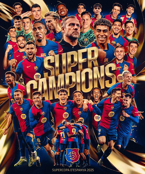 5播体育网 北京时间01月13日,在西班牙超级杯决赛中,皇家马德里与巴塞罗那展开了一场激烈的对决。上半场,姆巴佩一条龙破门。随后,莱万助攻,亚马尔低射扳平比分。卡马文加放倒加维,送给巴萨点球机会,莱万一蹴而就。孔德送出精准长传,拉菲尼亚头槌得分。上半场结束前,巴尔德低射建功。下半场,拉菲尼亚再下一城。什琴斯尼放倒单刀的姆巴佩被直红罚下,罗德里戈任意球直接破门得分。全场比赛结束,十人巴萨5-2战胜皇马赢得西超杯冠军。