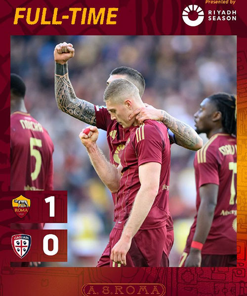 5播体育网 北京时间3月16日23:00,意甲联赛第29轮,罗马主场迎战卡利亚里。上半场,罗马控球率近七成,多夫比克屡造威胁但未能取得进球;下半场,多夫比克转身扫射破门打破僵局,斯维拉尔屡献神扑,替补登场的迪巴拉伤退。最终罗马主场1-0战胜卡利亚里,取得联赛6连胜。