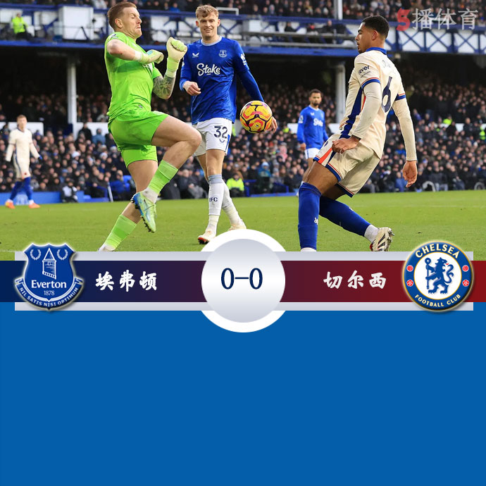 5播体育网 北京时间12月23日,在英格兰足球顶级联赛第17轮的较量中,埃弗顿坐镇主场迎战切尔西。上半场雅克松禁区推射被扑出,随后雅克松头球中柱,曼加拉远射被扑,下半场罗伯特-桑切斯扑救力保球门不失,阿达拉比奥尤关键封堵。最终,埃弗顿与切尔西各取一分,平分秋色。